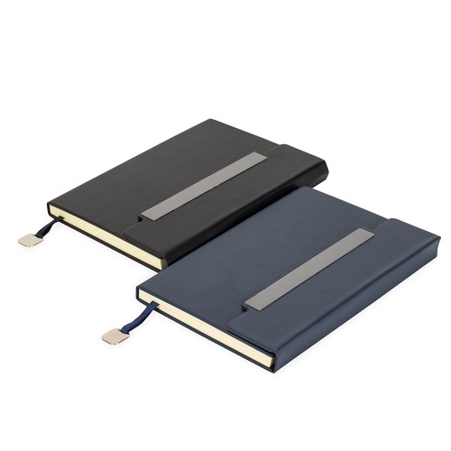 Caderneta com capa em couro sintético levemente texturizada, marca-páginas em fita de cetim com plaquinha metálica decorativa, aba de fecho magnético com placa metálica e cerca de 96 folhas marfim pautadas. MEDIDAS: Altura : 21 cm. Largura : 15 cm. Espessura : 2,2 cm. Peso aproximado (g): 325. GRAVAÇÃO: Silk screen 1 cor.