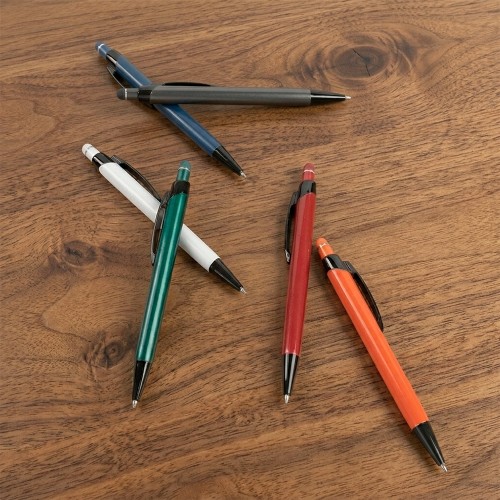 Caneta metálica com ponteira em plástico, além de detalhe emborrachado no topo para interação com dispositivos de telas sensíveis ao toque. Possui acabamento brilhante e conta com acionamento por clique e carga esferográfica azul de 1,0 mm. MEDIDAS: Altura : 14,2 cm. Largura : 1,6 cm. Peso aproximado (g): 17. GRAVAÇÃO: Laser.