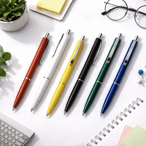 Caneta plástica com clip e ponteira em metal. Possui acionamento por clique e carga esferográfica azul de 1.0mm. MEDIDAS: Largura : 1,2 cm. Comprimento : 13,5 cm. Peso aproximado (g): 6. GRAVAÇÃO: Tampografia 1 cor. OBS.: PEDIDOS MÍNIMO DE 50 PEÇAS!