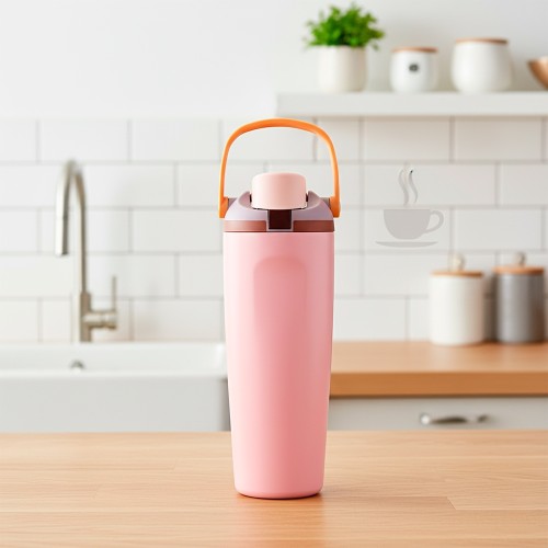 Garrafa térmica em inox com capacidade para até 850ml. Conta com estrutura de parede dupla e vedação a vácuo, ajudando a conservar a temperatura dos líquidos por mais tempo. Possui tampa rosqueável em plástico com protetor para o bocal, botão de acionamento, trava de segurança e alça de mão para transporte. Acompanha canudo para encaixe interno na tampa. MEDIDAS: Altura : 27 cm+ Largura : 10 cm. Circunferência : 28,8 cm. Peso aproximado (g): 466. GRAVAÇÃO: Laser.
