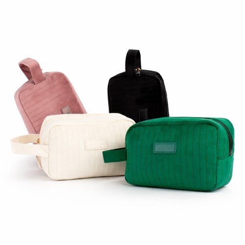 Nécessaire em poliéster de textura aveludada, com alça de mão lateral, compartimento único com bolso interno e fechamento em zíper e puxador em couro sintético. Acompanha plaqueta em couro sintético costurada. MEDIDAS: Altura : 13 cm. Largura : 20,5 cm. Profundidade : 7,5 cm. Comprimento : Alça 20 cm. Peso aproximado (g): 74. GRAVAÇÃO: Silk screen 1 cor.