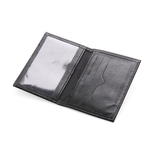 Porta-cartão em couro com três divisórias para cartões e documentos, além de um bolso adicional com visor em plástico transparente. MEDIDAS: Largura : 7,9 cm. Espessura : 0,7 cm. Comprimento : 10,8 cm. Peso aproximado (g): 29. GRAVAÇÃO: Laser.
