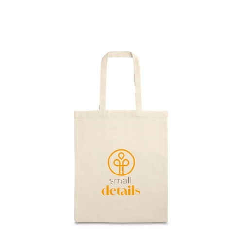 Sacola em 100% algodão (120 g/m²). MEDIDAS: com alças de 40 cm. 270 x 330 mm. GRAVAÇÃO: Silk screen 1 a 3 cores ou Transfer 1 cor ou full cor medidas aproximadas: 160 x 200 mm.