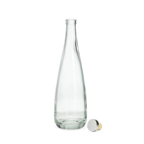 Garrafa de vidro com tampa rolha em material sintético e capacidade máxima de até 550ml. MEDIDAS: Altura :  27,4 cm. Largura :  8 cm. Circunferência :  25,3 cm. Peso aproximado (g):  518. GRAVAÇÃO: Laser.