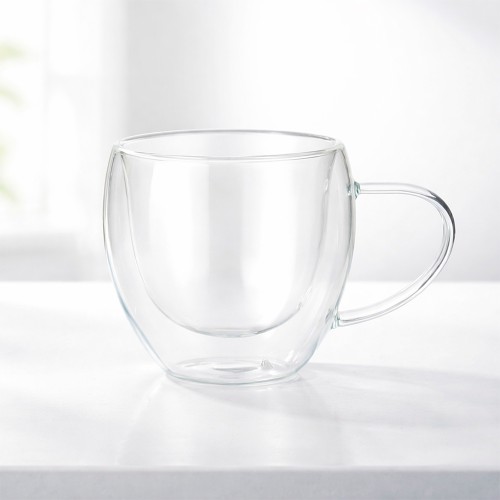 Xícara em vidro borossilicato com capacidade para até 160ml e estrutura de parede dupla, que impede que o calor alcance a parede externa. MEDIDAS: Altura : 7,9 cm. Largura : 1,2 cm. Diametro : 7 cm. Peso aproximado (g): 91. GRAVAÇÃO: Laser.